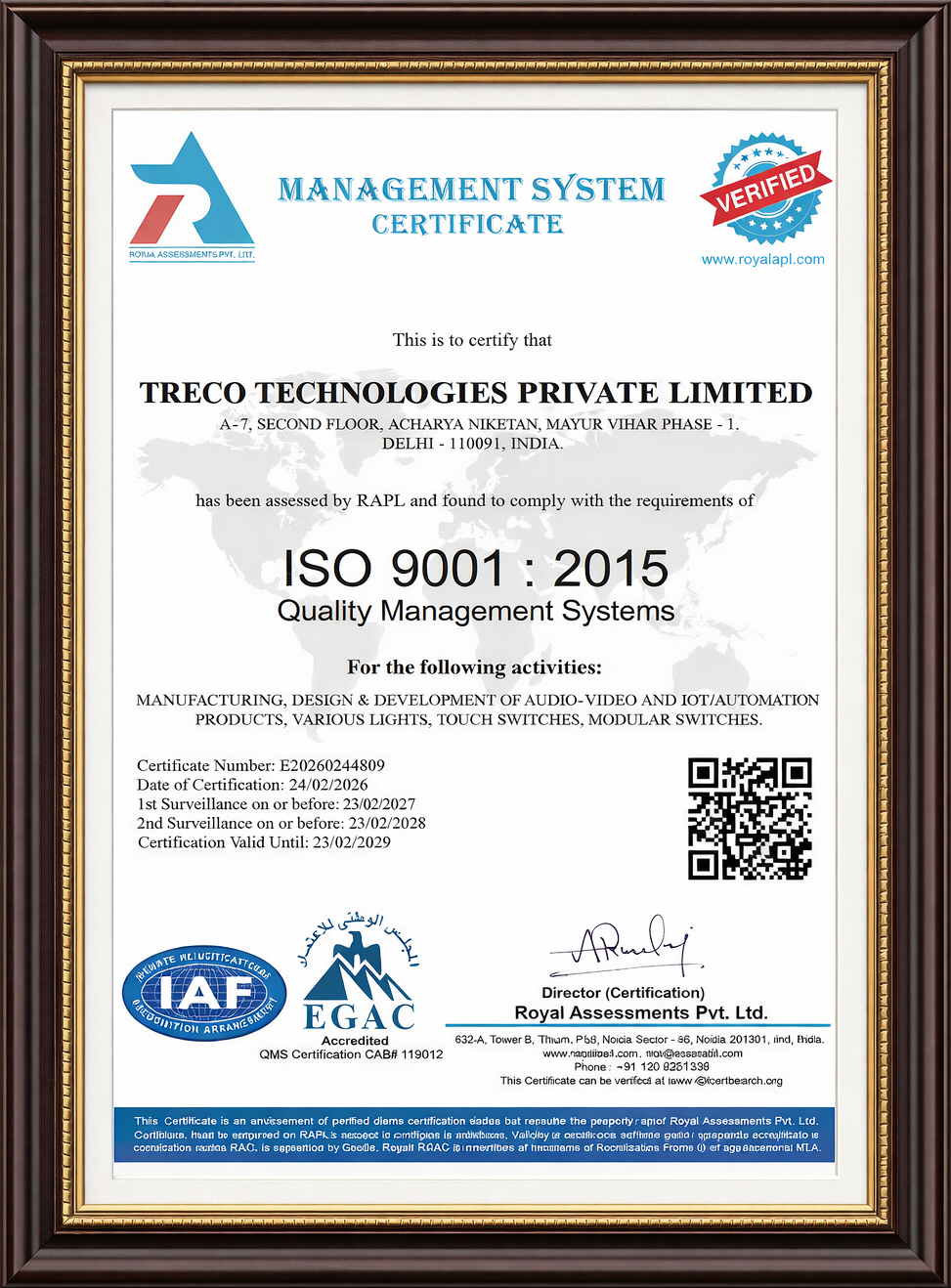 TRECO systems include motion sensors, automated scheduling, remote control, and intelligent lighting features that improve security while reducing unnecessary power consumption.